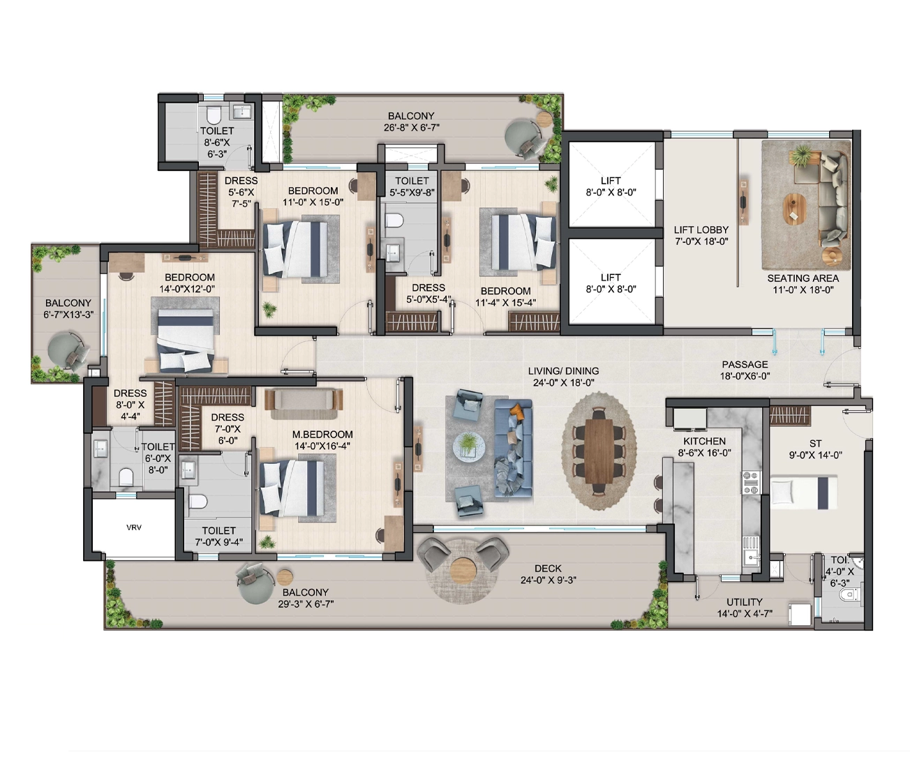 At its heart lies a curated lifestyle experience, featuring a five-star clubhouse, swimming pool, yoga pavilion, state-of-the-art gym, fine-dining restaurant, and contemporary office spaces. Every amenity is seamlessly integrated to support a life of comfort, balance, and distinction, where everyday living feels considered, complete, and effortlessly refined.